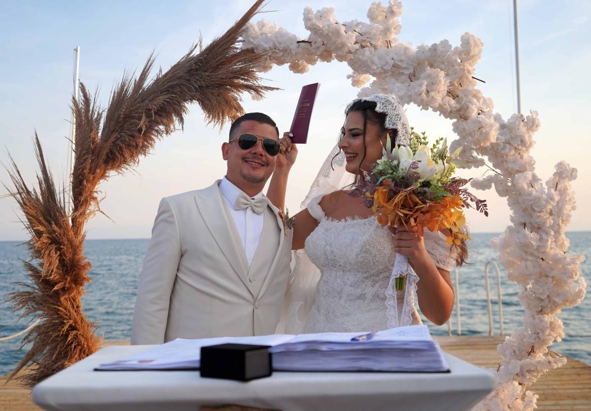 - Antalya'da deniz kenarında düzenlenen ve birçok ülkeden konukların katıldığı düğün, kültürel bir buluşma oldu.