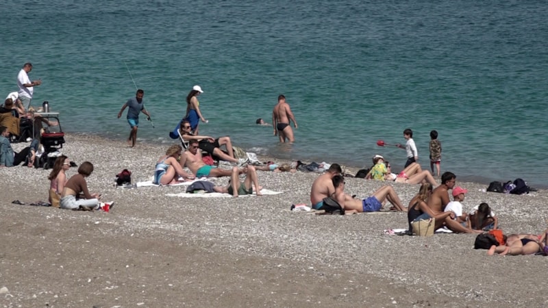 Hava sıcaklığının 20, deniz suyunun 17, nem oranının ise yüzde 53 ölçüldüğü kentte, yerli ve yabancı turistler denize girmenin keyfini yaşadı.