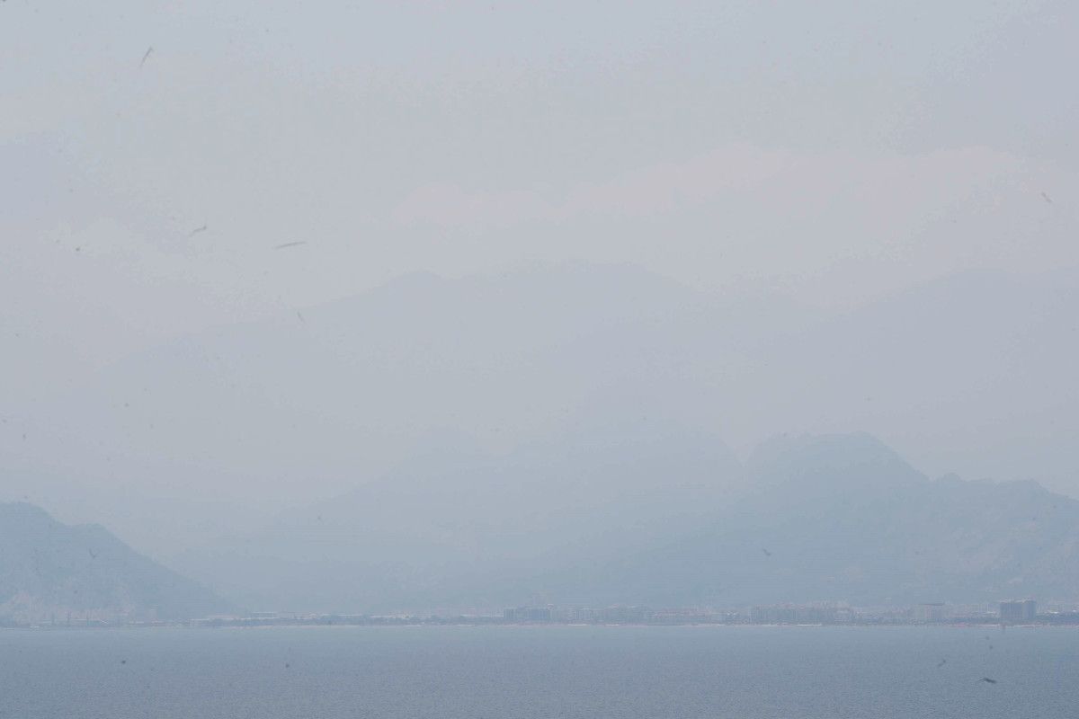 Yüksek nem nedeniyle Antalya'nın simgelerinden birisi olan ve eşsiz günbatımı manzarası ile izleyenleri büyüleyen Beydağları, nem bulutlarının arasında kayboldu.