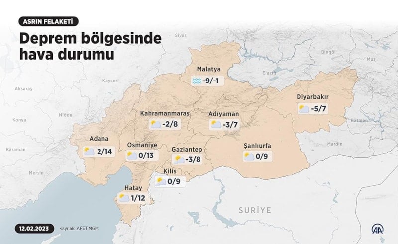 12 Şubat'ta deprem bölgesindeki hava durumu