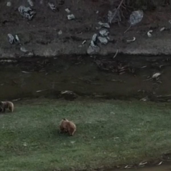 Ardahan'da kış uykusundan uyanmış, yavrularıyla dağınık gruplar halinde ve tek olarak dere kenarında yiyecek arayan ayılar, bir tepede onları izleyen vatandaş tarafından görüntülendi.