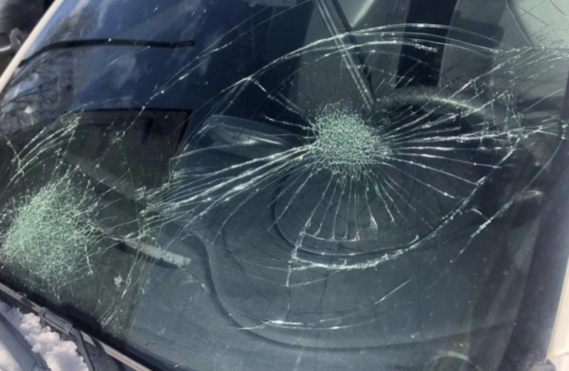 Bazı araçların ön camında büyük çatlaklar meydana gelirken bazı araçların üst kısmı içe çöktü.