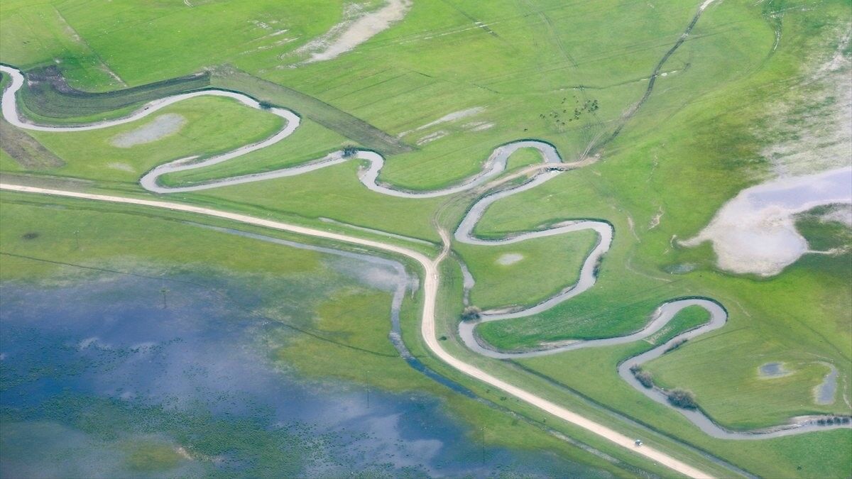 Kıvrımlarıyla eşsiz manzara oluşturan dere ve menderesleri, AA ekibi görüntülendi.