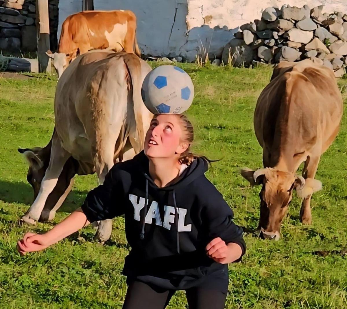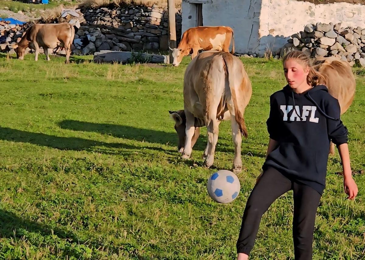 Irmak Zarife Şeker, yaylada bazen top oynayacak kimse bulamayınca anne ve babası ona zaman zaman eşlik ediyor, babası atılan şutları tutmaya çalışıyor.