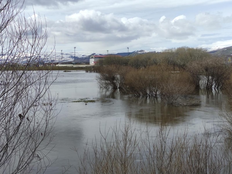 Ardahan'ın içinden geçip Gürcistan'dan Hazar Denizi'ne dökülen Kura Nehri'nin debisi yükselince Ardahan Ovası suyla doldu.