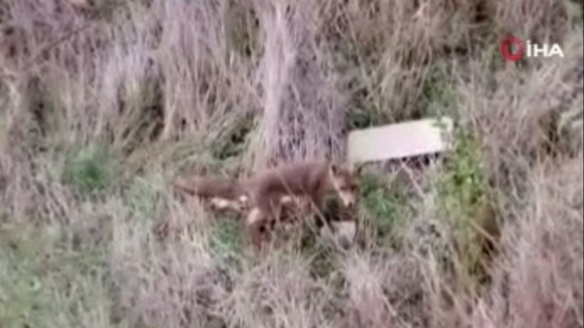 Görütnülerde tilki, bahçeden çıkıp ormanlık alanda tekrar gözden kayboldu.