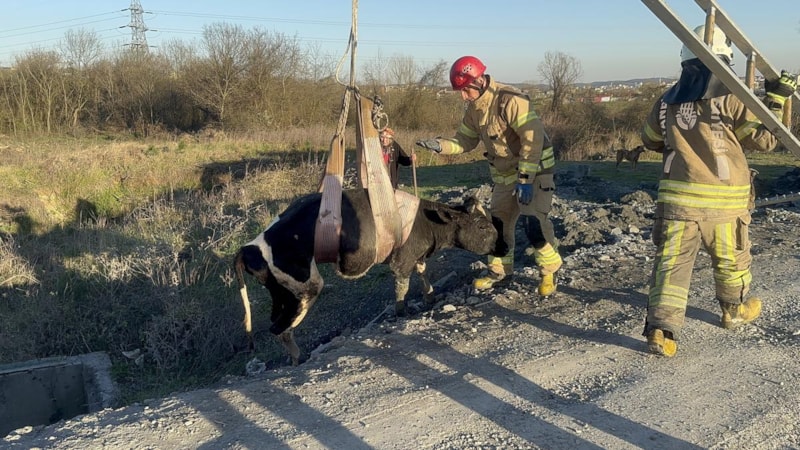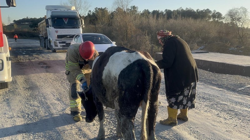 Bu hayvan benim otlatmak için buraya getirmiştim. Ben düştüğünü gördüm diğer hayvanlarım gitti bu burada kaldı. Benim 7-8 adet hayvanım var başka bir yerde evim vardı satıp buraya geldik zamanında eşimde vefat etti 12 sene önce bende bu şekilde geçimimi sağlıyorum. İtfaiyeye ben haber verdim kurtarılmasını bekliyorum daha öncede başıma böyle bir şey gelmedi. Ben zarar gördü mü bilmiyorum ama bu hayvanım gebeydi, bilmiyorum beni yaklaştırmıyorlar.