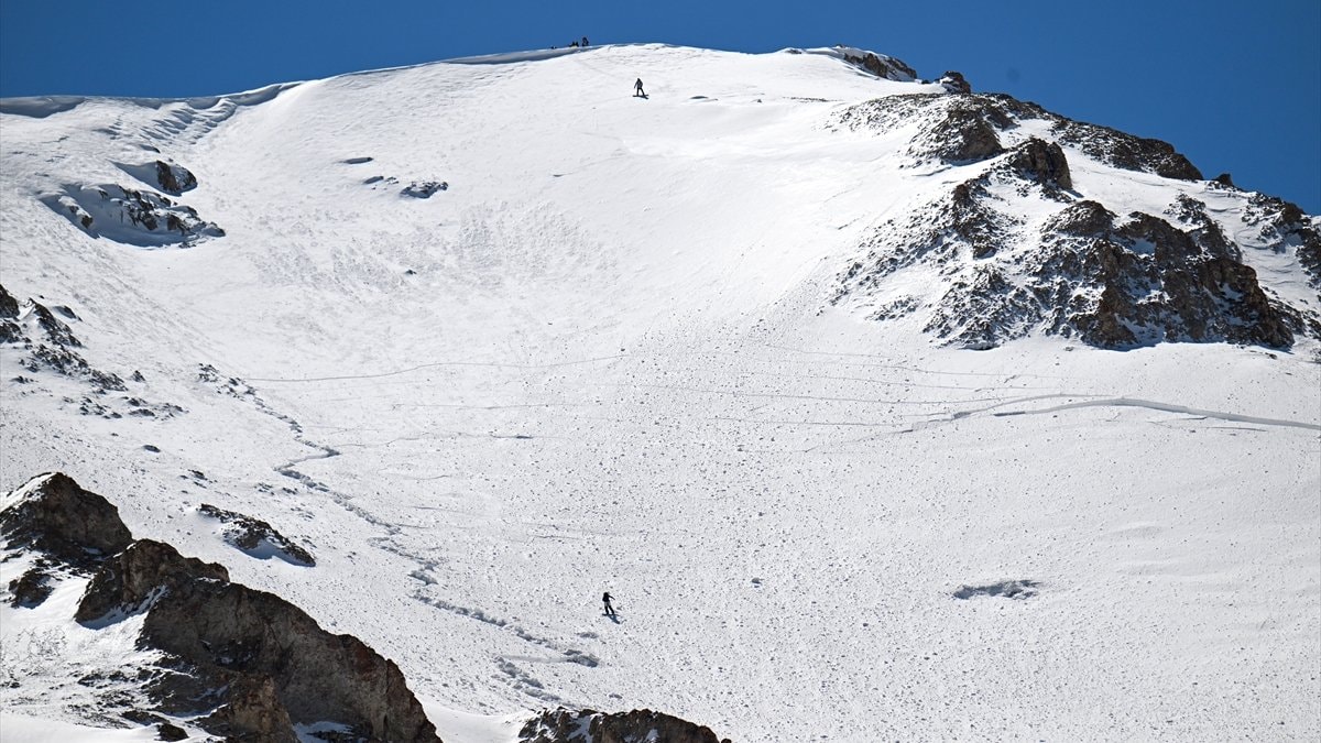 Van'da bir grup kayakçı, dün metrelerce karın bulunduğu 3 bin 550 metre yüksekliğindeki Artos Dağı'na tırmandı.