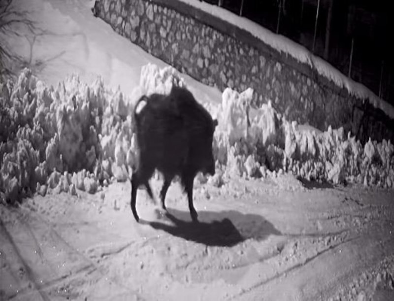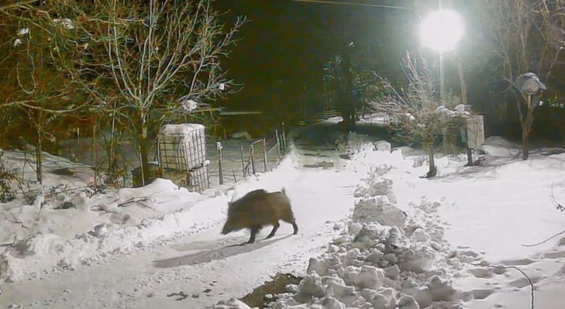 Ardanuç ilçesine bağlı Cevizli köyünde kar yağışı nedeniyle yiyecek bulmakta zorlanan yabani hayvanlar yerleşim alanına kadar inerken kurt, çakal, domuz ve vaşak güvenlik kameralarına yansıdı.