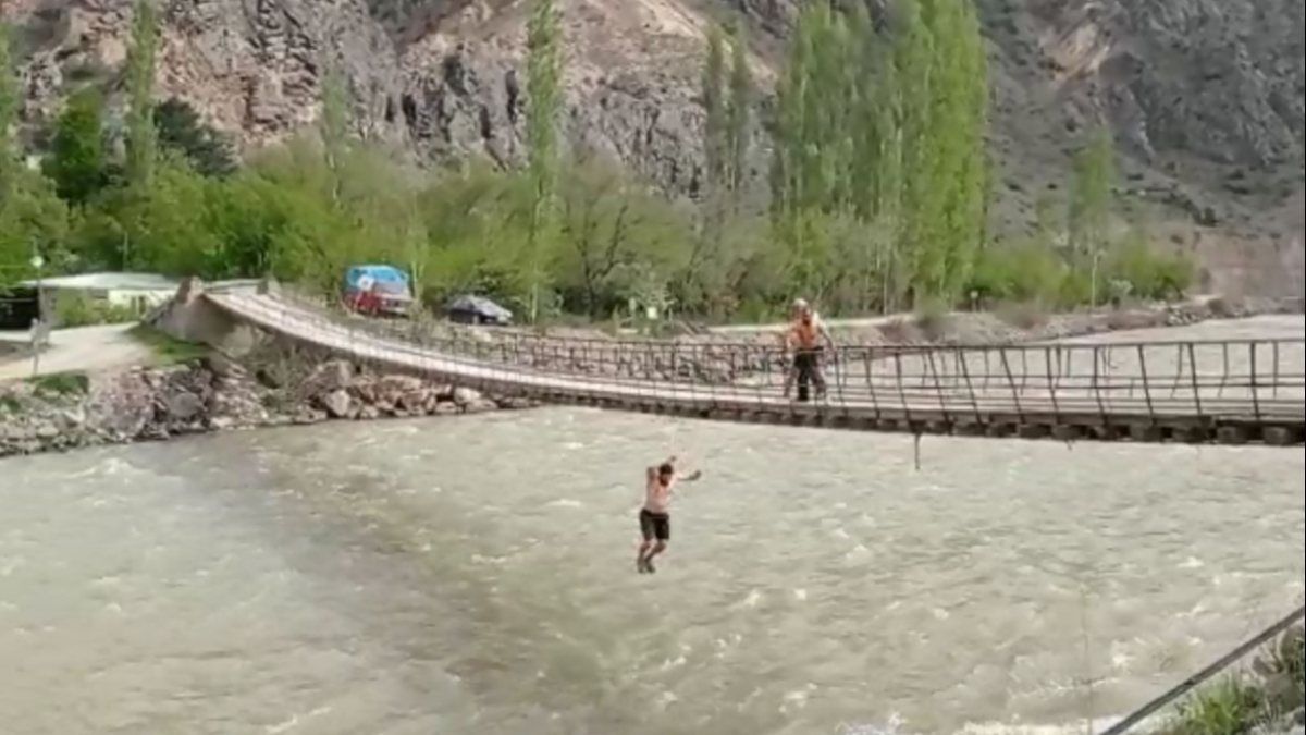 Artvin'de asma köprüden Çoruh Nehri'ne atladılar VİDEO