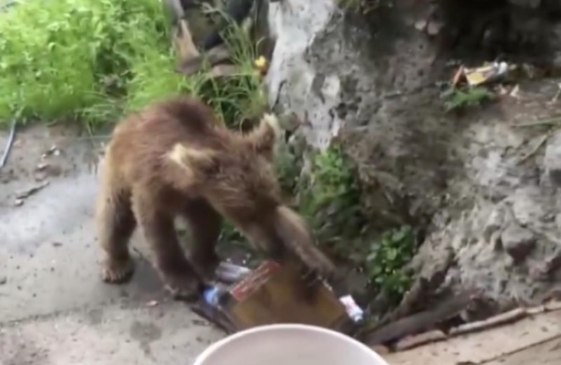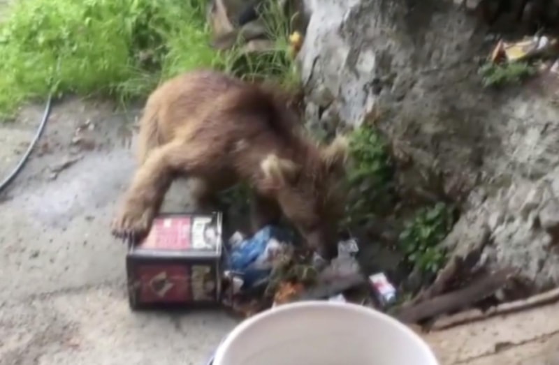 Ayı, çöplerden bulduğu bir yiyeceği alarak geldiği bölgeden uzaklaştı.