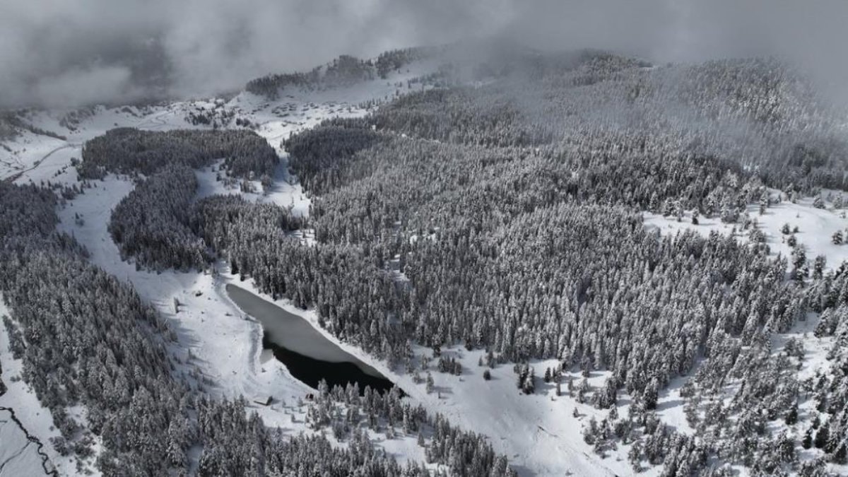 Artvin'in Şavşat ilçesinde bulunan 'Balık Gölü', kar yağışının etkili olmasının ardından beyaz örtüsünü giydi ve doğaseverlere muhteşem bir manzara sunmaya başladı.