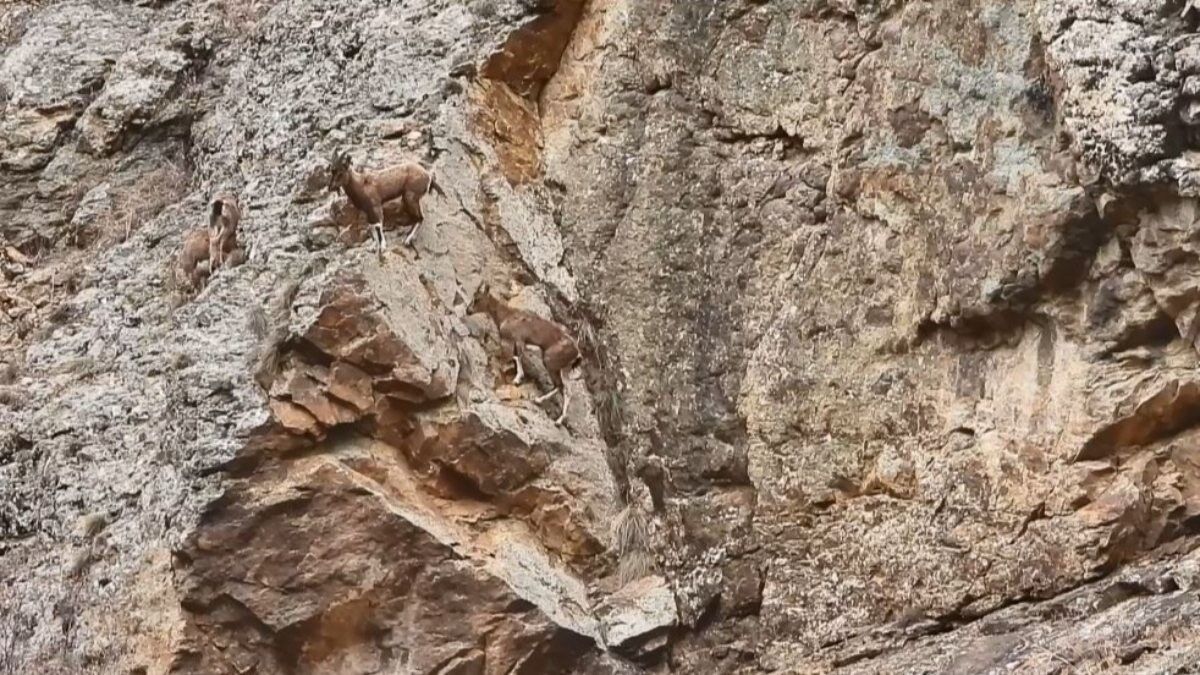 Kayalıkların renginde oldukları için fark edilmeleri çok zor olan yaban keçilerinin bu kez görüntülendi.