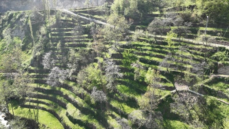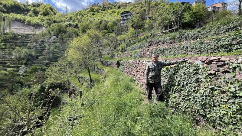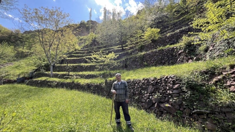 Artvin’de bir ailenin dededen toruna uzanan emeği, taş duvarlarla örülen teraslı tarım arazisinde yaşamaya devam ediyor. 2 dönümlük alan, yıllar süren çabayla 8 dönüme çıkarıldı.