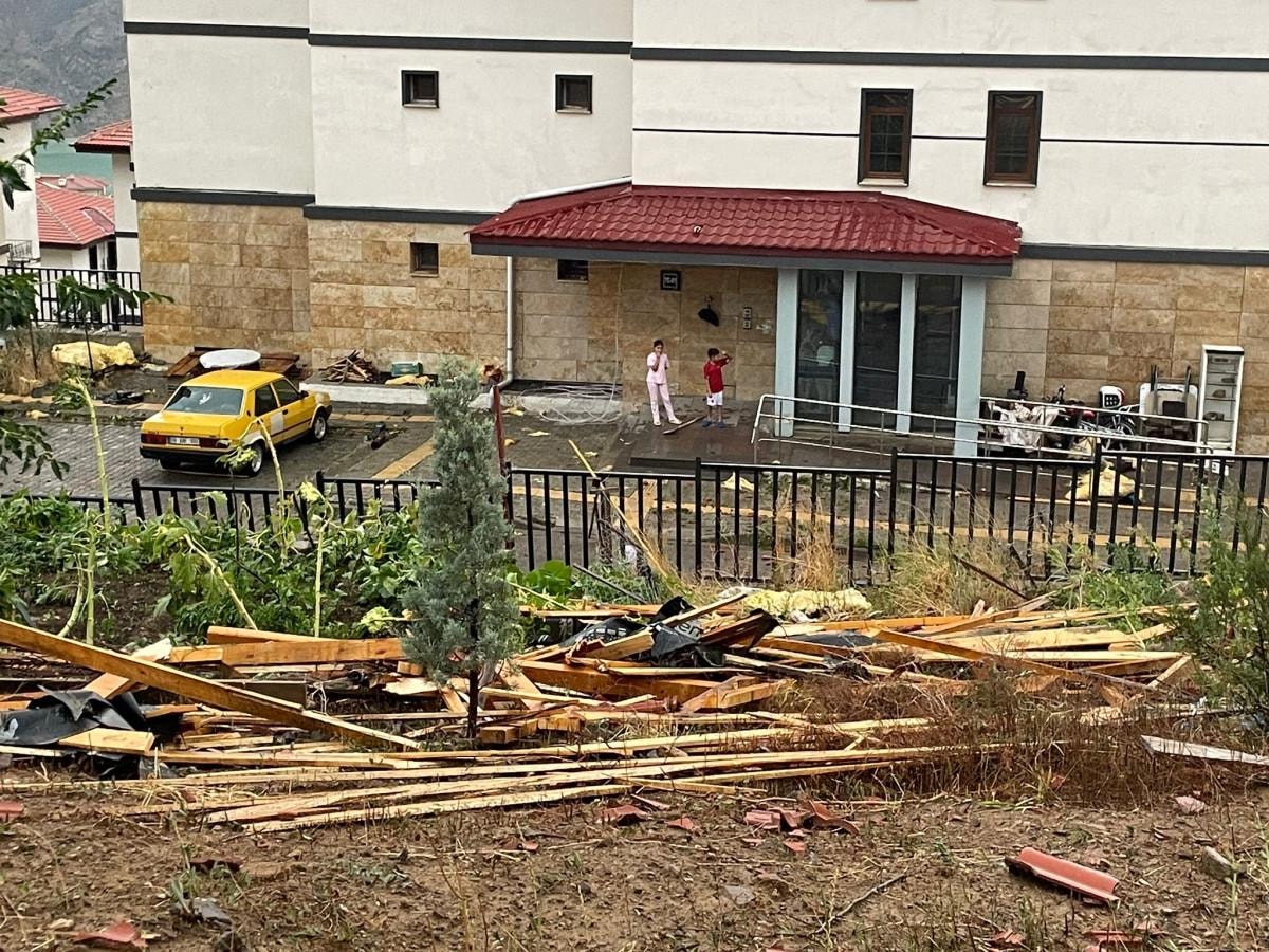 Şiddetli rüzgar nedeniyle bazı evlerin çatıları uçarken, iş yerlerine ait masa ve sandalyeler etrafa savruldu. Fırtınaya hazırlıksız yakalanan esnaf ve vatandaşlar, kapalı alanlara sığınarak korunmaya çalıştı.