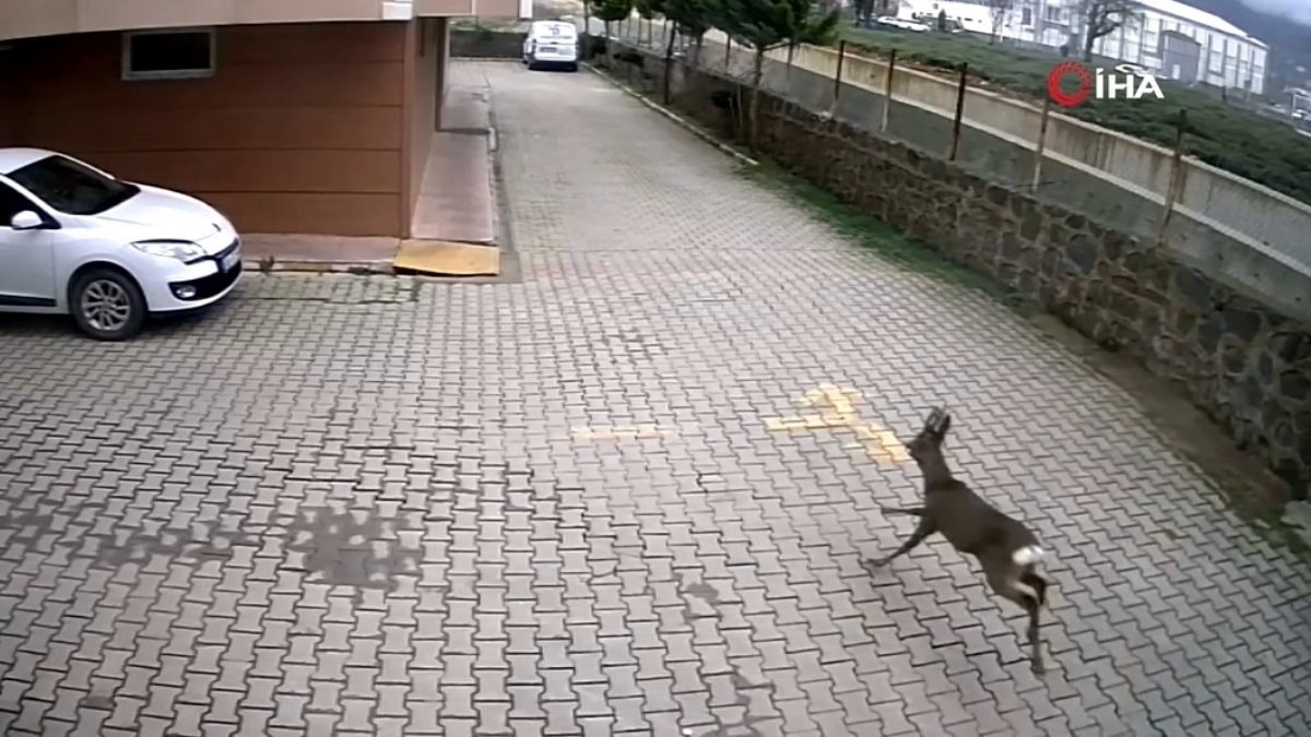 Dereden hızlı bir şekilde karacanın geldiğini gördük. Köpekler kovalamasını engelledik. Hayvan köpeklerden kurtulmayı başarınca dereden çıkarak, sitenin bahçesine girdi. Sitede bir tur attı, komşular çarşaf attı onla yakalamayı başardık ve Doğa Koruma Milli Parklar Şube Müdürlüğüne teslim ettik.