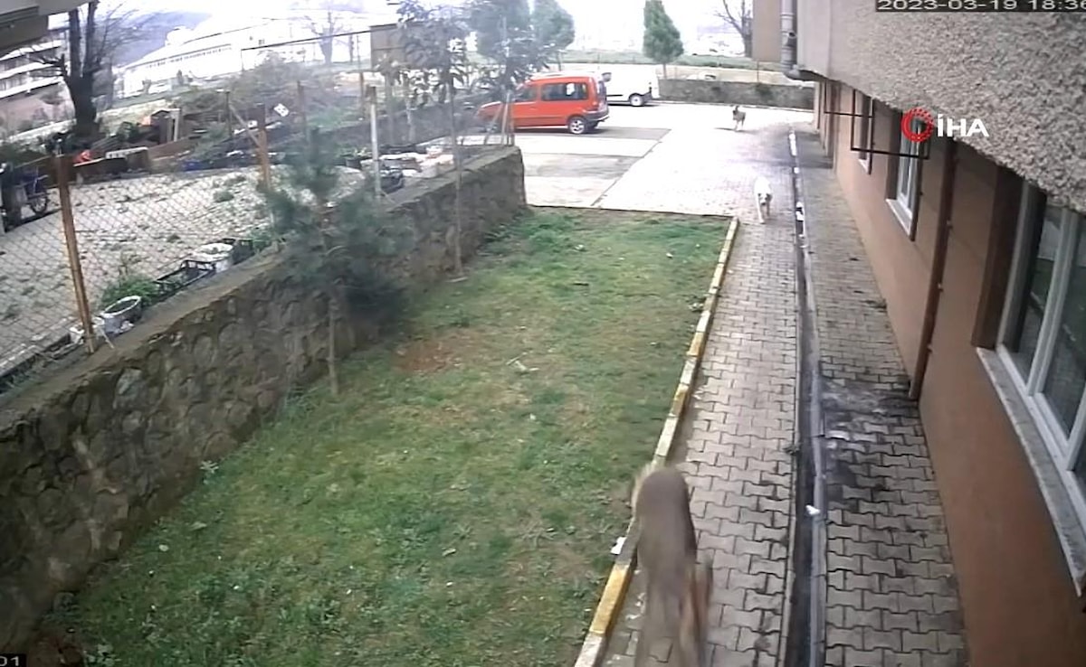 Artvin'in Arhavi ilçesi Boğaziçi Mahallesi'ne inen bir karacayı fark eden sokak köpekleri, karacayı kovalamaya başladı.