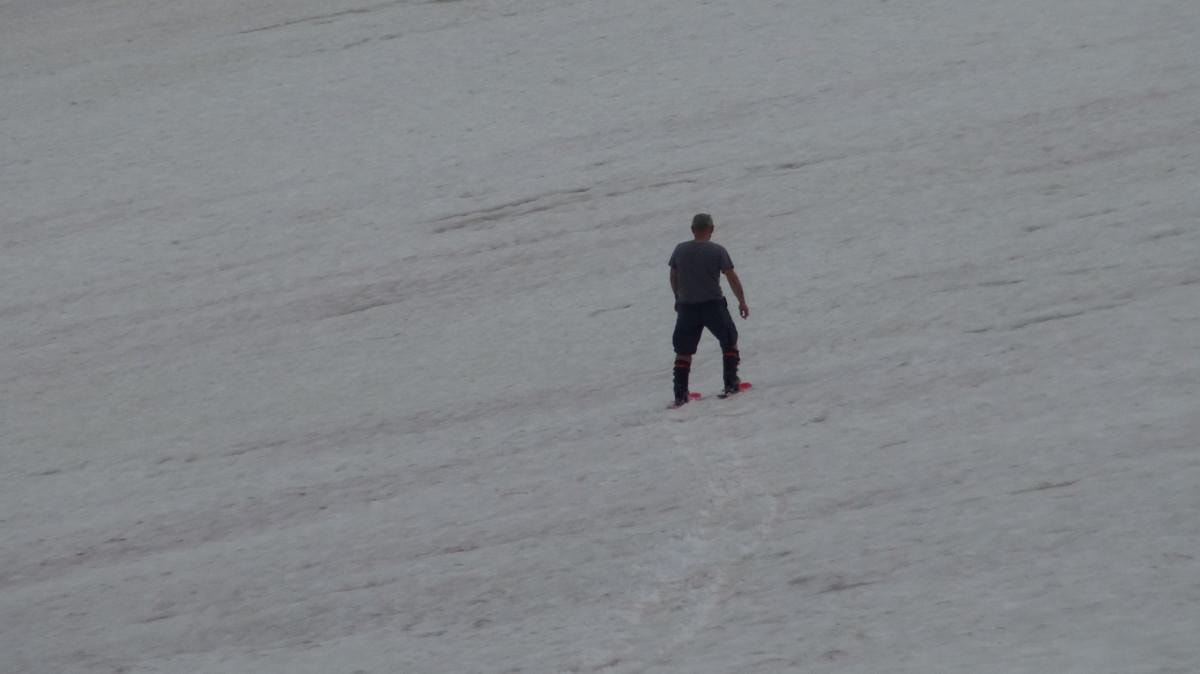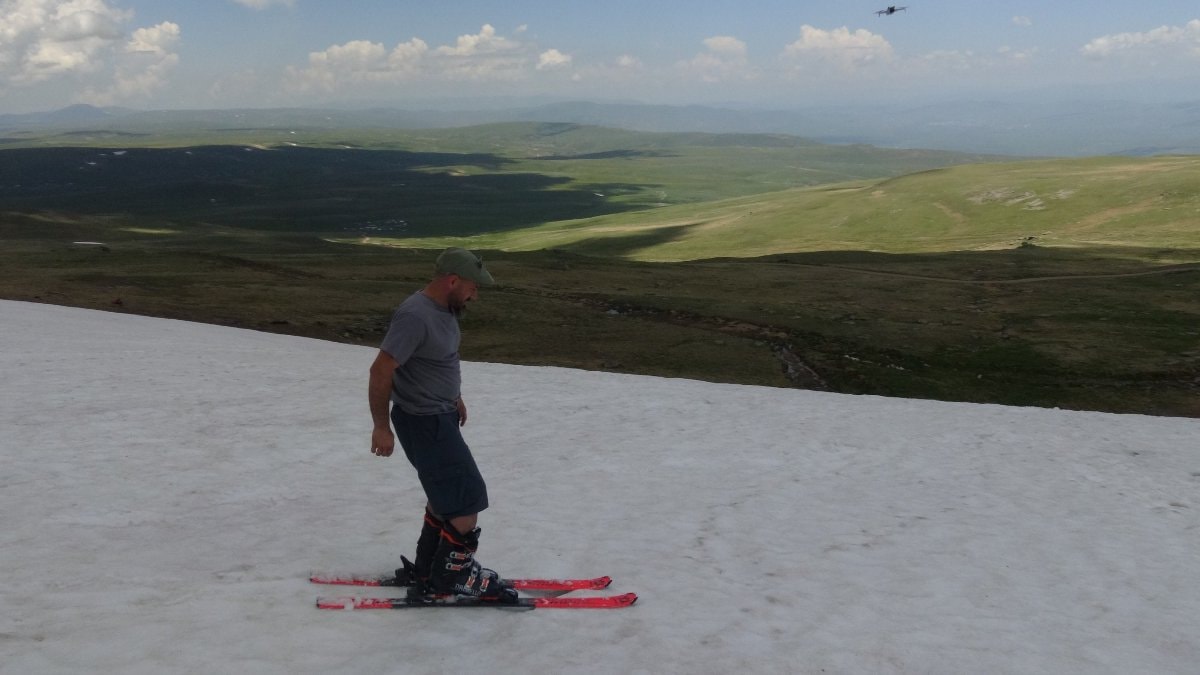 Yaz mevsiminde karla kaplı doğa harikası bölgede kayak yaparak unutulmaz anlar yaşayan Tatar, doğa ile baş başa zaman geçirerek büyüleyici bir deneyim yaşadı.