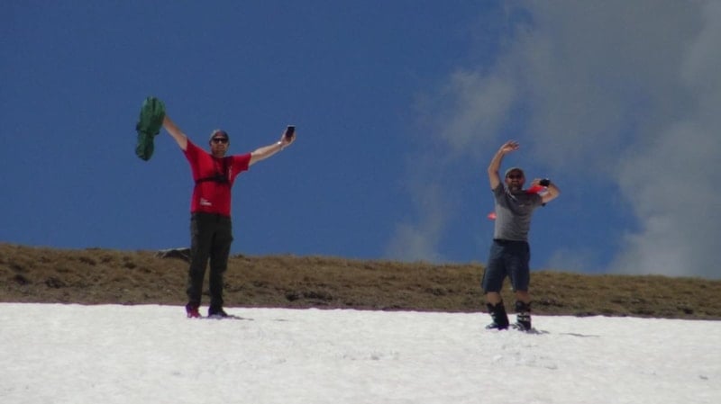 Kayaksever Yasin Tatar ise, “Kemalpaşalıyım. Şavşat'tayız, Boğa Tepe'deyiz. 3 bin rakımda karı görünce atladık geldik. Kayak takımlarım vardı, kayak sezonuna yetiştirememiştim. Karı görünce hemen kaymak istedim. Yaz sezonunda burada kaymak güzel. Normalde 1,5 saatlik araç yoluyla gelip, sonrasında 2 saat yürüdük. Yolları kar kapatmış. Burada da yaklaşık 200 metrelik bir parkurumuz var. Parkur mükemmel değil ama kayak yapmaya elverişliydi.” ifadelerini kullandı.