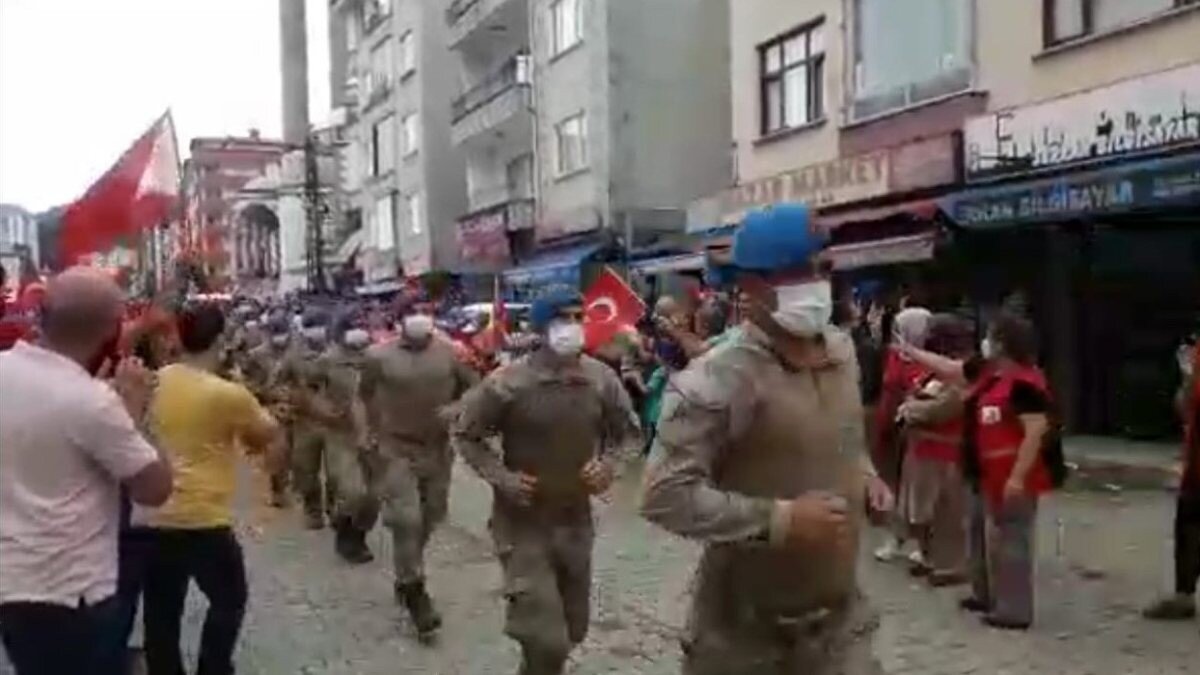 Dağları terörden Arhavi’yi çamurdan temizleyen komandolar, AK Parti İlçe Teşkilatı tarafından vatandaşlara dağıtılan Türk bayrakları, tulum ezgileri ve “En büyük asker bizim asker” tezahüratları ile uğurlanırken, Artvin Valisi Yılmaz Doruk ve İl Jandarma Komutanlığı yetkilileri, askerlere hizmetleri için teşekkür etti.