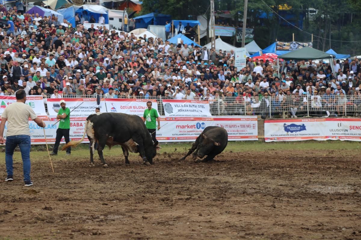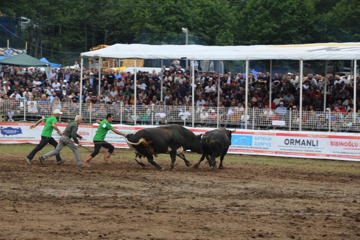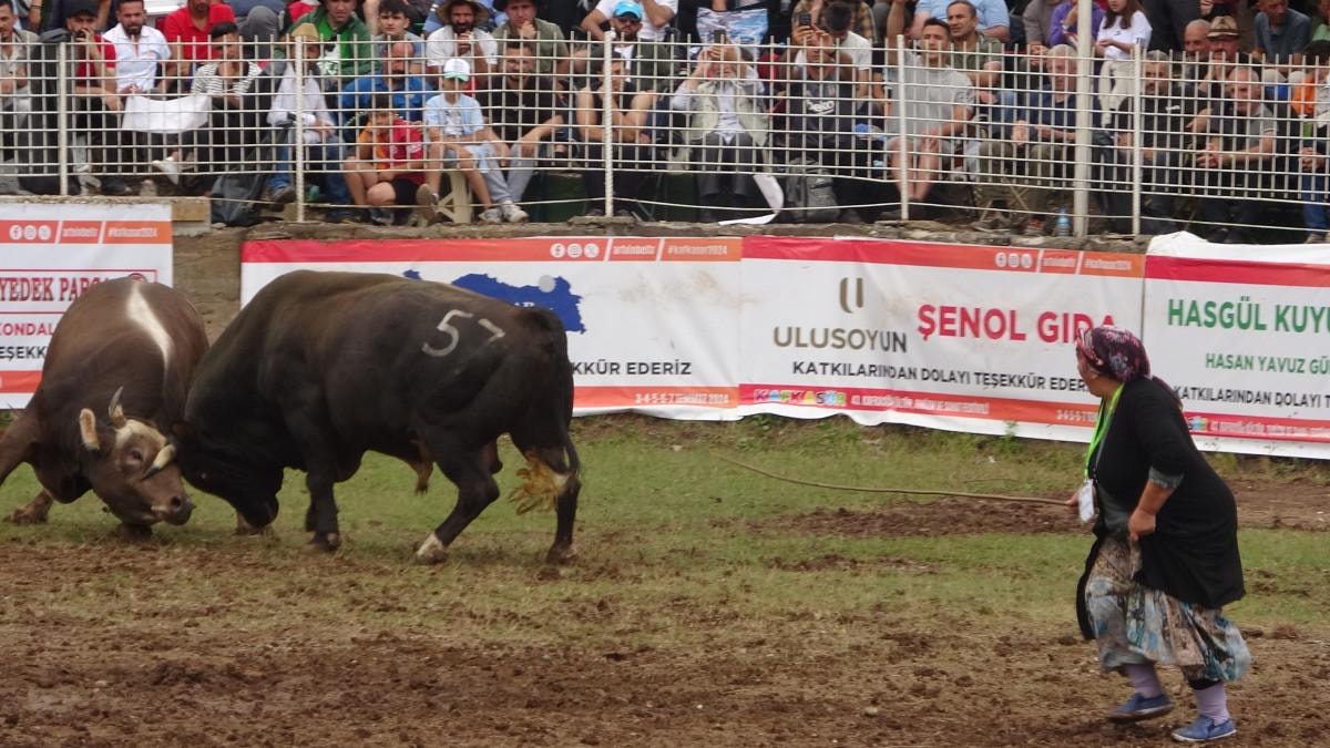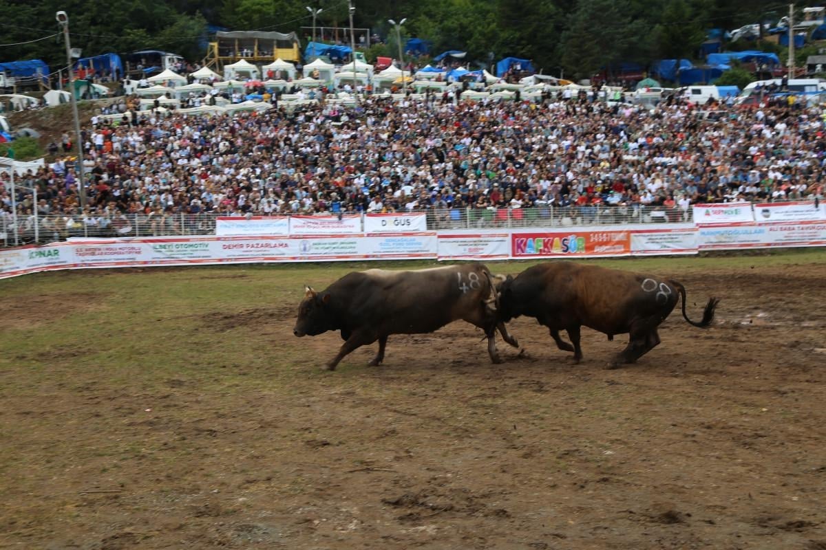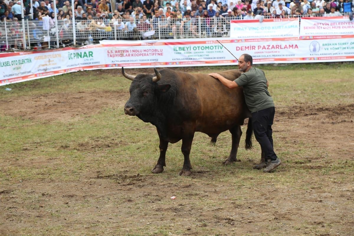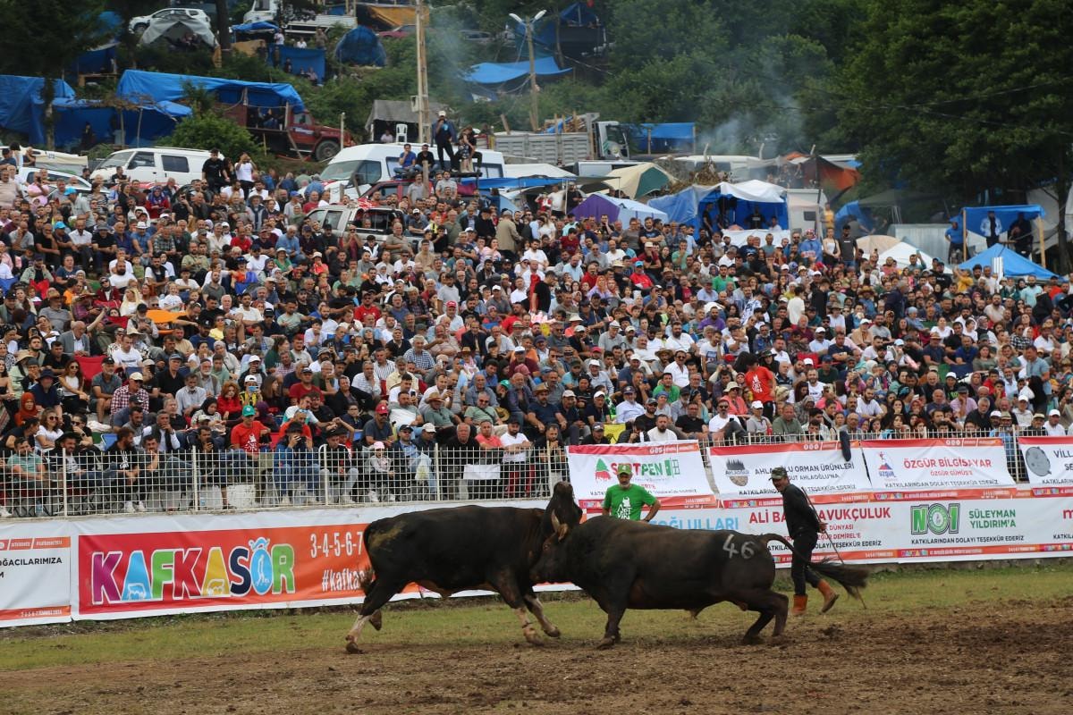 1.200 rakımlı Kafkasör Yaylası'ndaki arenada düzenlenen boğa güreşlerine, Artvin ve ilçeleri başta olmak üzere Rize ve Erzurum illerinden 108 boğa sahibi katıldı.