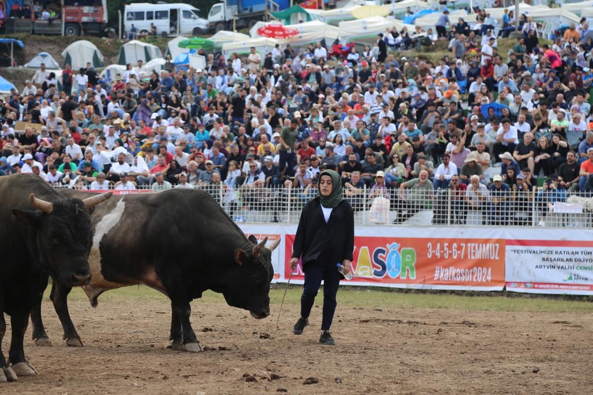Artvin'de 43. kez organize edilen Kafkasör Kültür, Turizm ve Sanat Festivali'nin dördüncü günü boğa güreşleriyle devam etti.