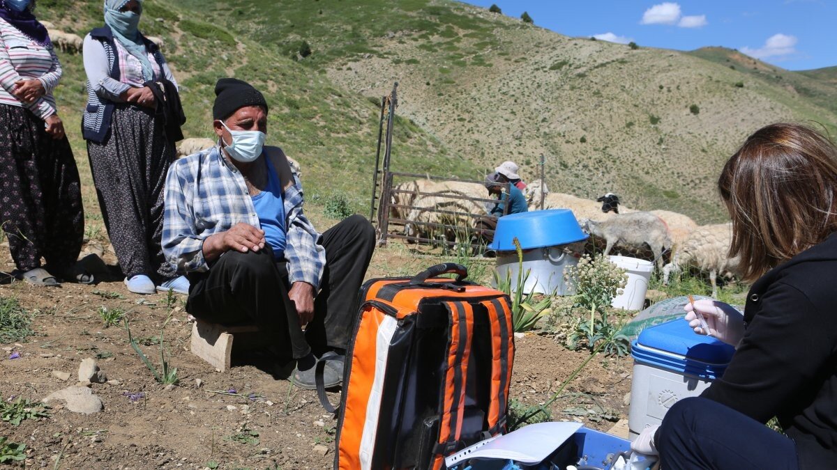 Tunceli'nin Pülümür ilçesindeki 2 bin 500 rakımlı Kalınkaş Yaylası'nda, göçerlerin hastaneye gelemediklerini öğrenen aşı timleri, hemen harekete geçerek, yaylaya geldi.