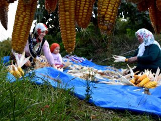 Topladıkları mısırları damlara astıklarını söyleyen Nalçacı, "Yaklaşık 20 gün boyunca mısırların güneşte kurumasını bekliyoruz. Sonra su değirmenine götürüyoruz. Öğüterek mısır unu elde ediyoruz ve ambarlarda saklıyoruz. Nisan ayından ekim ayına kadar yaklaşık 8 ay boyunca emek verdiğimiz ürünü kış boyu tüketiyoruz." diye konuştu.