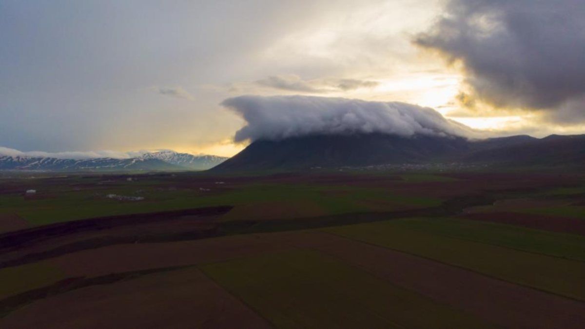 Dağın bulutla kaplanması, çekilen karelere yansıdı ve görenlerin seyrine doyamayacağı bir manzara oluştu.