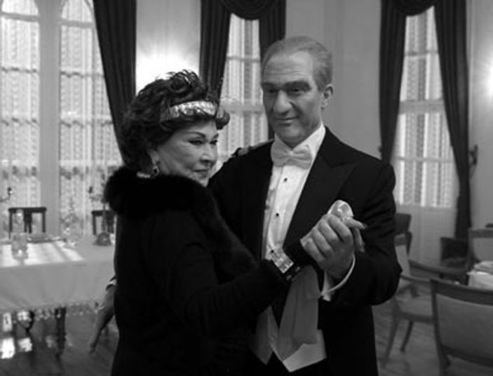 SÜMER EZGÜ ATATÜRK'E NASIL BENZEDİ? İlk defa "Gel 10 Silicone" yöntemi 2 Atatürk maskesi yapıldı ve Atatürk'ü canlandıran Sümer Ezgü'nün makyajı yaklaşık 5 saat sürdü. SON BALO Atatürk'ün 1938 yılında baloda giydiği orijinal kıyafetler de Bursa Osman Gazi Kız Olgunlaşma Enstitüsü tarafından hazırlandı. Belgeselin çekimleri Atatürk'ün vefatından önce katıldığı "Son balo"nun olduğu Bursa tarihi belediye sarayında yapıldı.AA