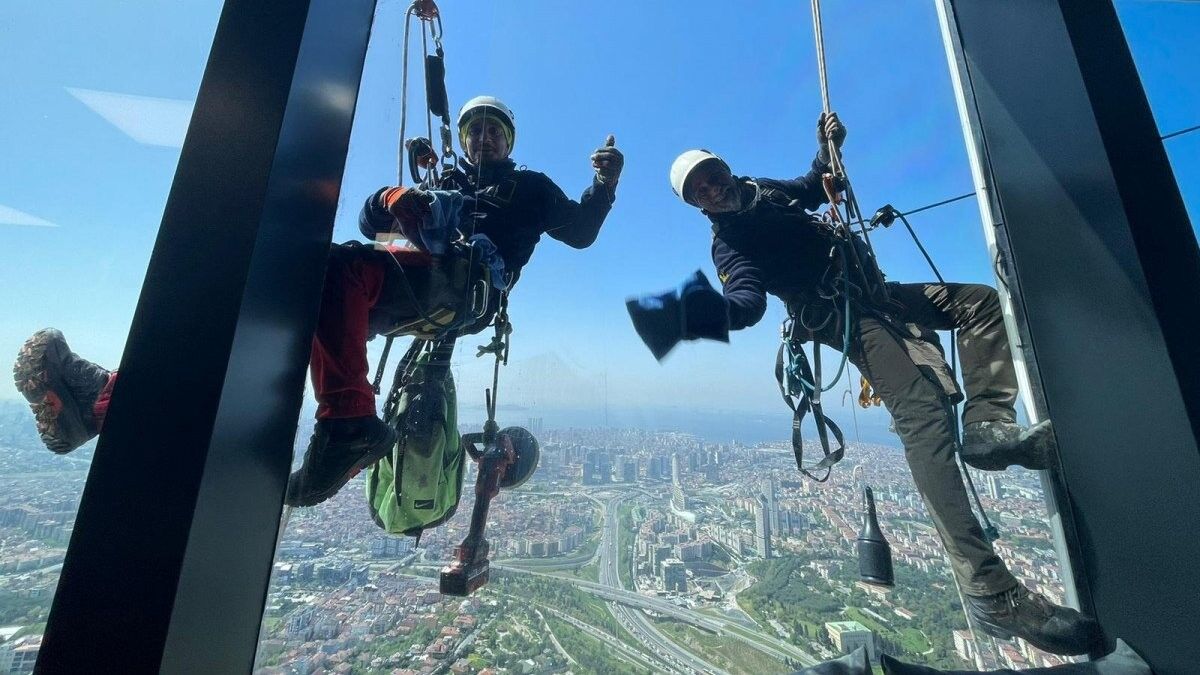 Yeri geldiğinde vücutlarında 25 kiloya yakın ağırlık taşıyan ve adrenalin dolu bu mesleği yapan Kaan Kara, "Bayramda İstanbul sakinlerinin birçoğu belki ailesiyle birlikte kuleyi ziyarete gelecek. Geldiklerinde de biz de onlara temiz bir camdan, temiz görüntü, temiz manzara sunmayı isteriz" dedi.