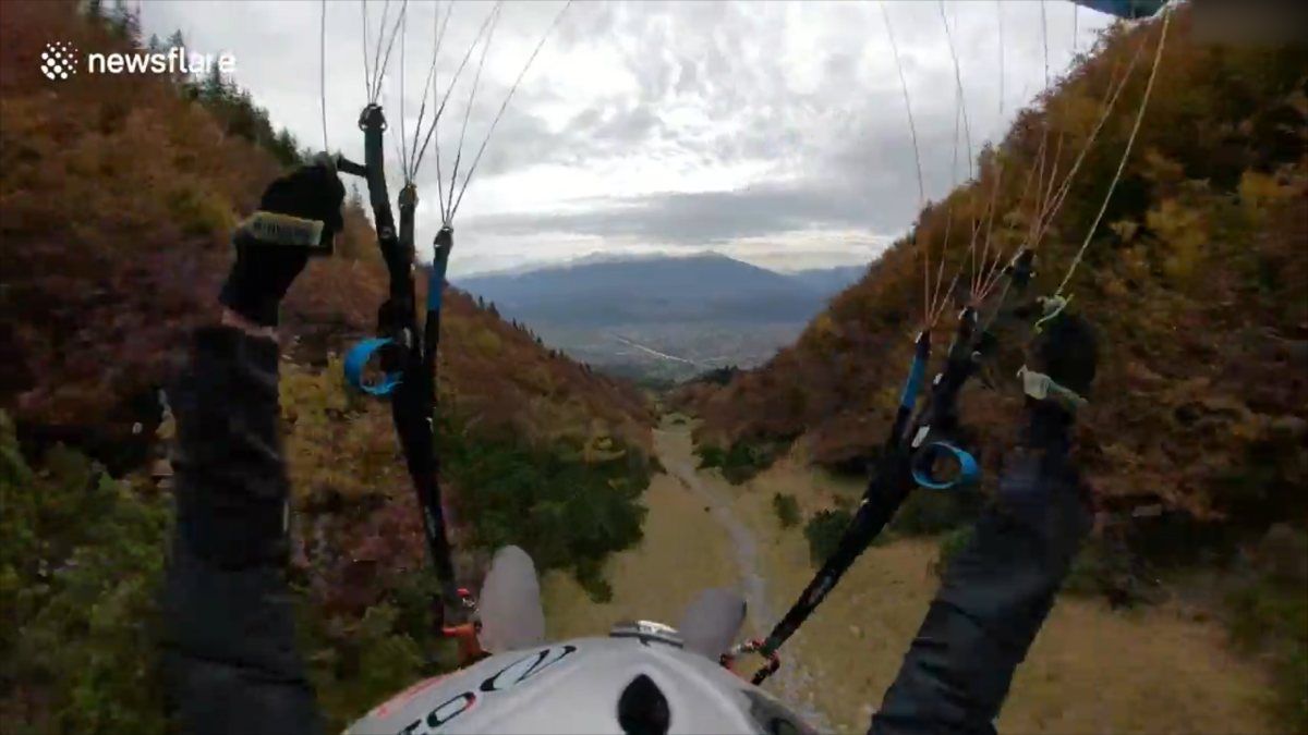 Avusturya'da adrenalin bağımlısı pilotun paraşütle uçuşu VİDEO