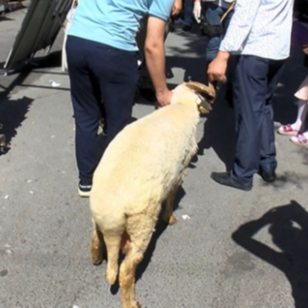 Ayasofya Camii açılışına kurbanlık koçla geldi VİDEO