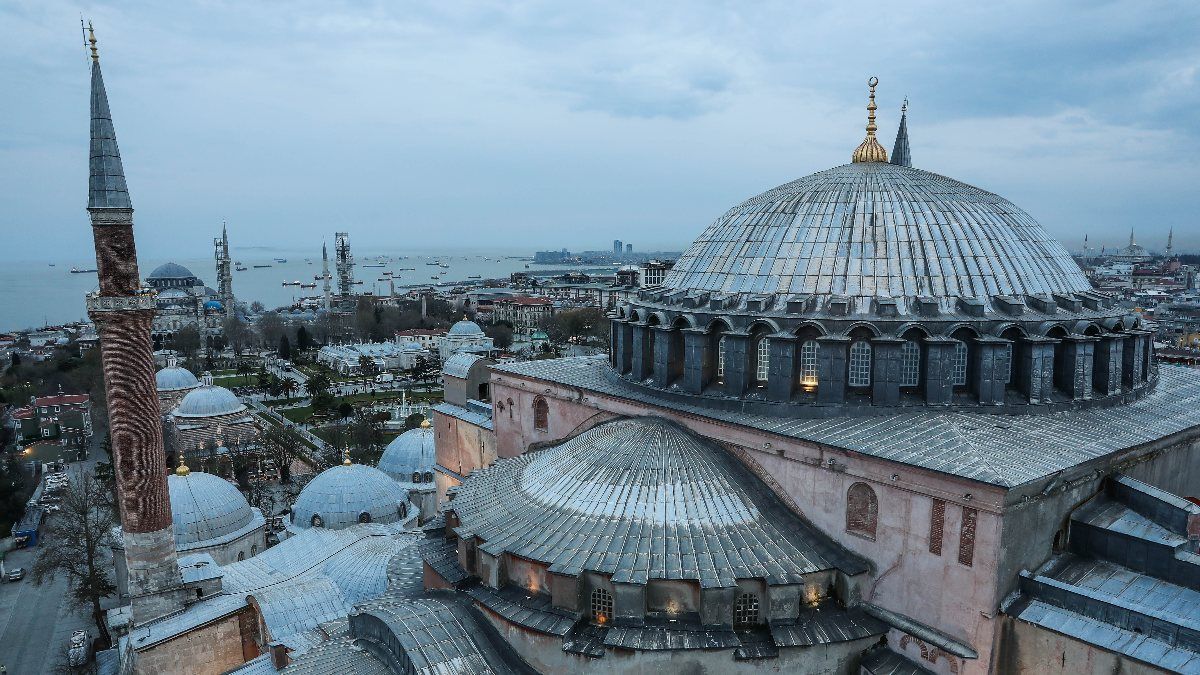 Günde on binlerce yerli ve yabancı turisti ağırlayan Ayasofya Camii'nin manzarası yüksekten de büyüledi.