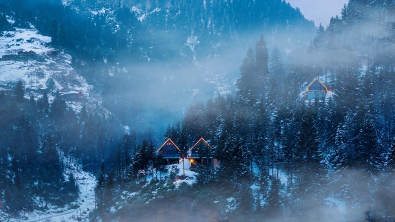 Sisli dağların arasından sızan evlerin ışıkları akşamın karanlığını aydınlattı.