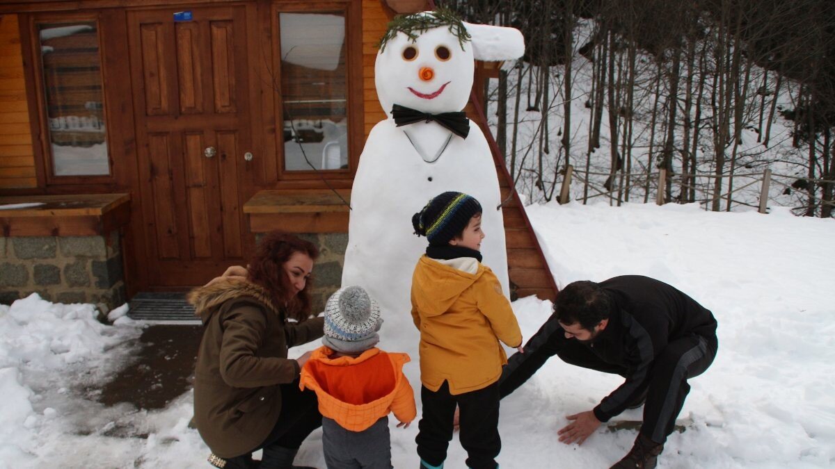 Orman manzaralı tesislerde bol bol oksijen depolayan tatilciler karın keyfini çıkardı. Kar topu oynayan, kardan adam yapan tatilciler konakladıkları dağ evlerinin çevresinde aileleri ile eğlenceli bir tatil geçirdi.