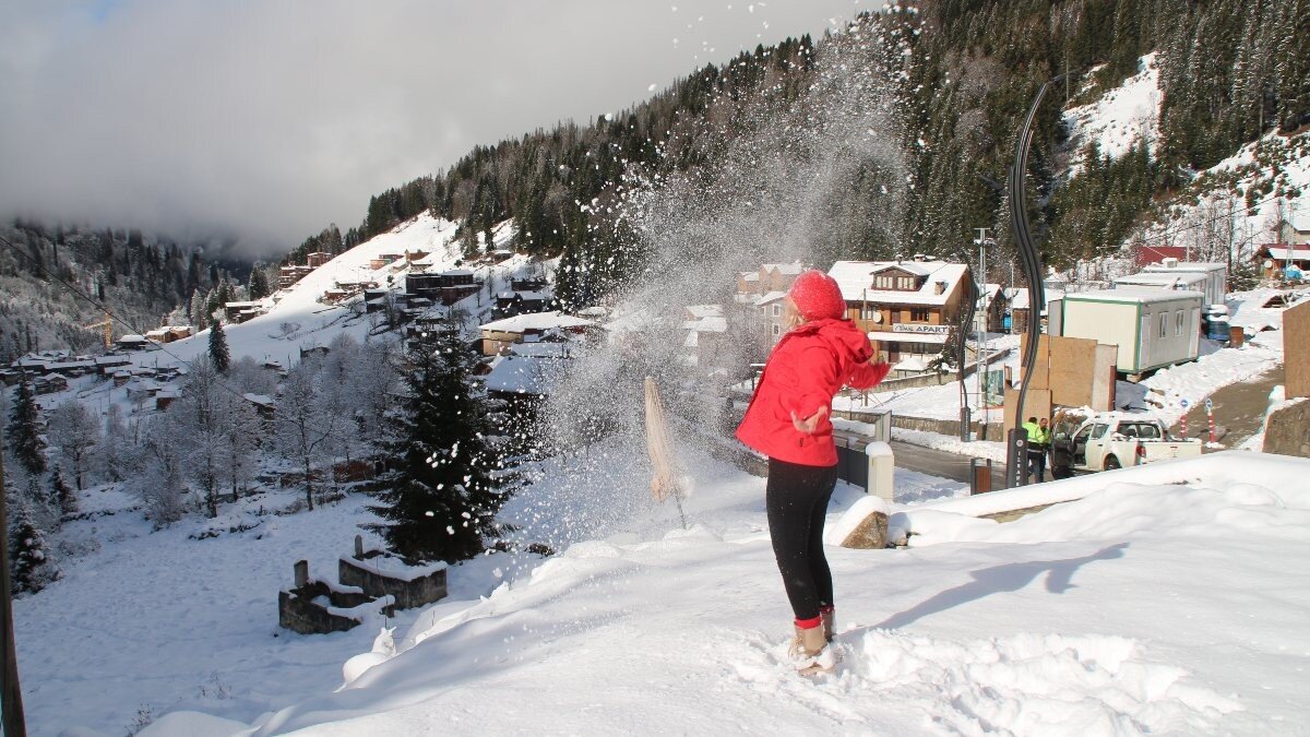 Özlem Meral de “Kar yağınca Ayder’e kaçtık. İyi ki de gelmişiz. Karın keyfini çıkarıyoruz.” dedi.
