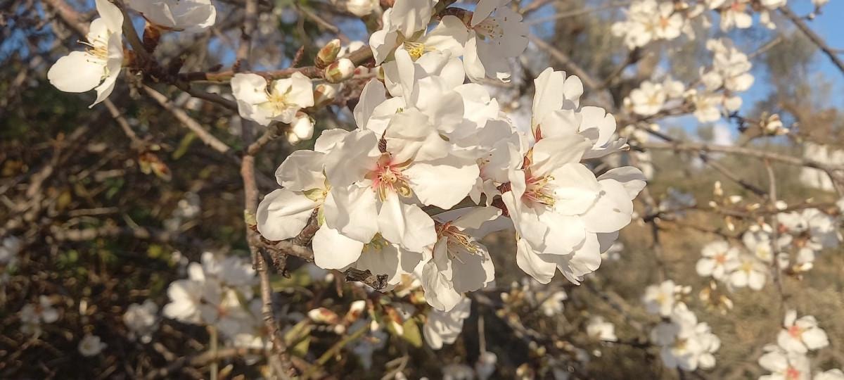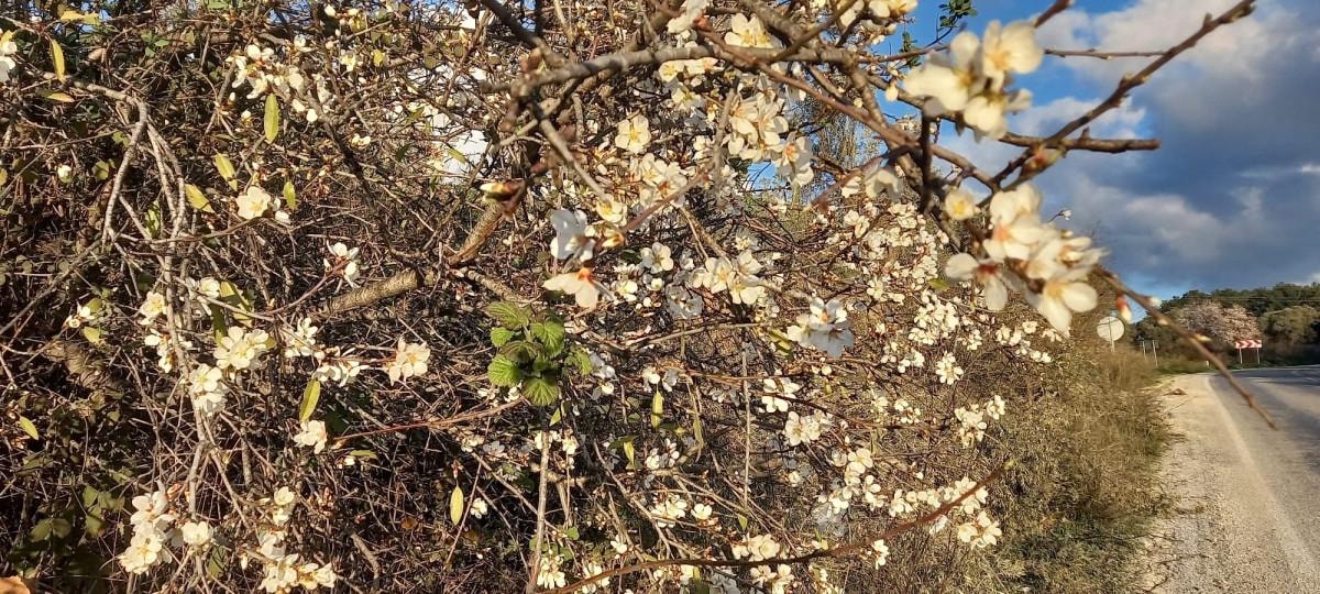 Çiçek açtıklarında büründükleri renkli görünümleri baharın müjdecisi olarak bilinen badem ağaçları, bu yıl mevsimleri şaşırarak yılın ilk ayında çiçek açtı.