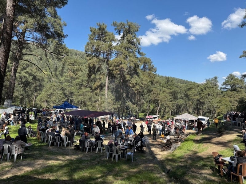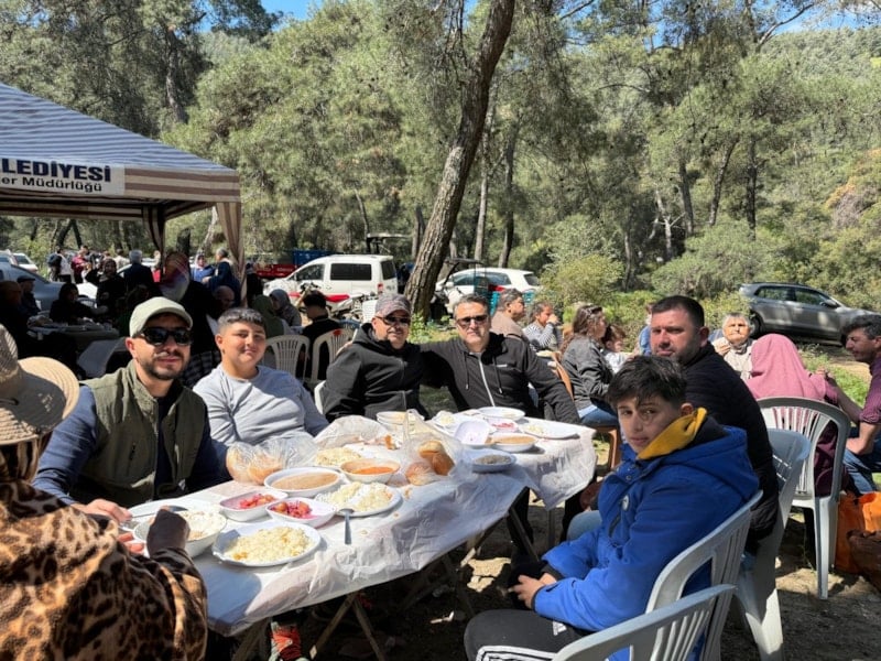 Hayır etkinliği kapsamında kazanlar dolusu keşkek, aşure ve çeşitli yemekler hazırlanarak katılımcılara ikram edildi. Baharın keyfini çıkaran davetliler, hem doğayla iç içe vakit geçirdi hem de geleneksel lezzetlerle buluştu.