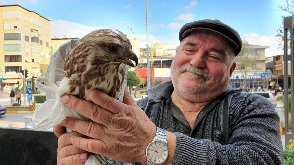 Nazilli Belediyesi önünde Doğa ve Milli Parklar Müdürlüğüne götürülmek üzere Hayvanları Koruma Derneğine şahini teslim eden Recep Yener, hayvanı teslim ettiği sırada gözleri doldu. Oldukça duygulanan Yener’in bu davranışı takdir topladı.