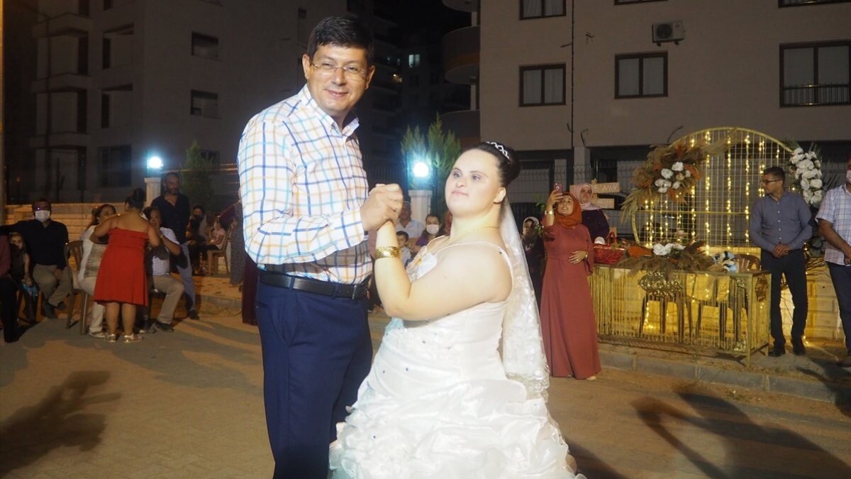 Aydın'da Nazilli ilçesinde yaşayan 20 yaşındaki down sendromlu Hande Çetin, hayali olan gelinliği temsili düğünde giydi.