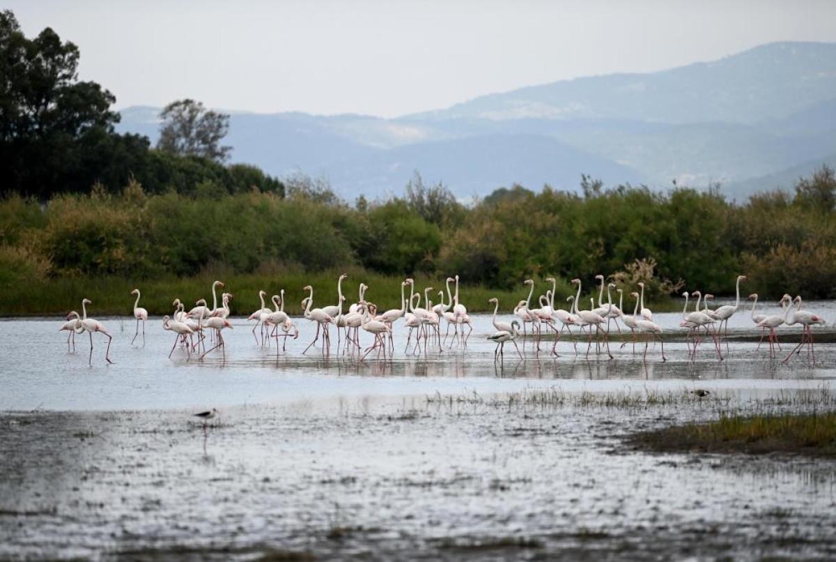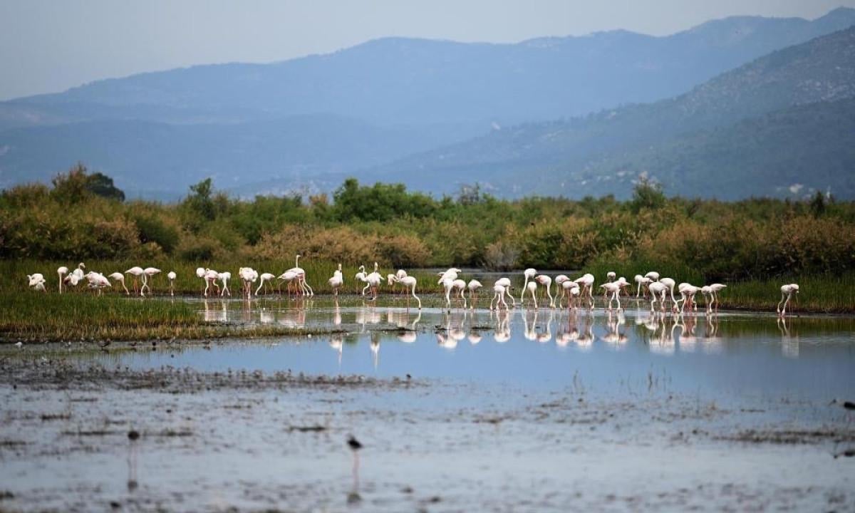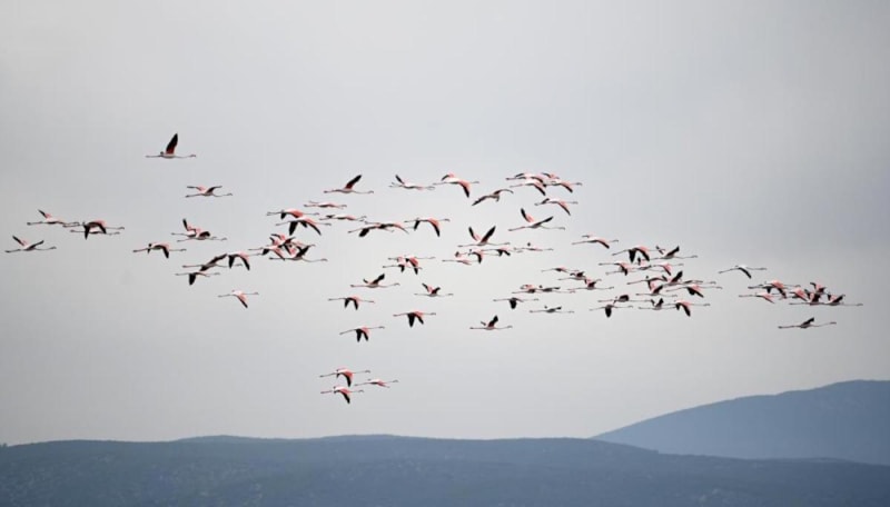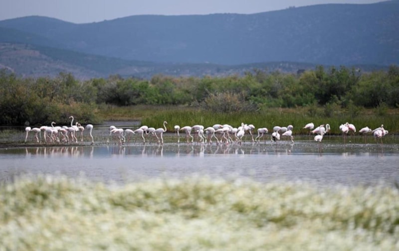 Ege Bölgesi kıyılarında, bahar yağmurlarının etkisiyle sazlık alanlardaki su seviyeleri yükseldi, flamingolar gelmeye başladı.
