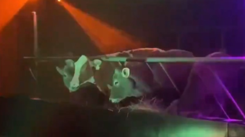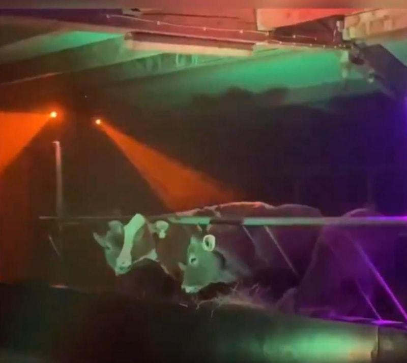 İneklerine ışıklı bir ortam hazırlayan çiftçi, arkaya müzik eklemeyi de ihmal etmedi.