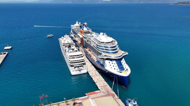 Aydın'ın Kuşadası Limanı’na bu sabah dünyanın en büyük kruvaziyer gemilerinden biri olan Malta bayraklı Celebrity Ascent ve Bahama bayraklı Seabourn Quest yanaştı.