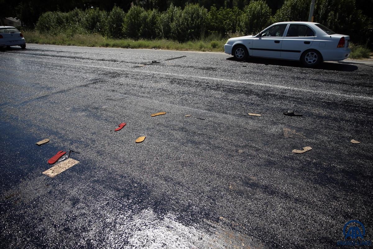 Bazı vatandaşların terliği, eriyen asfalta yapıştı.