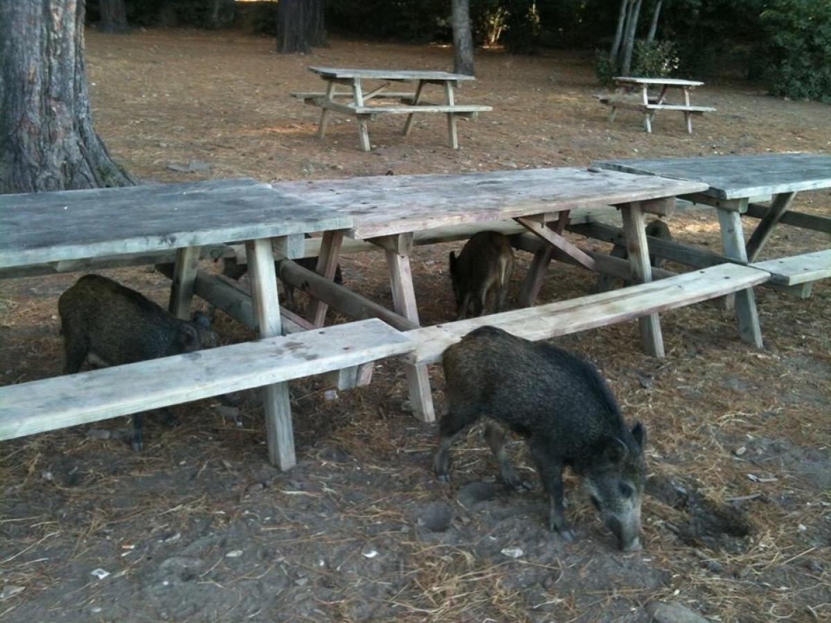 Domuzlar, denize yüzen kadının eşyalarını bıraktığı yere yaklaşarak çantasını ormana kaçırdı.