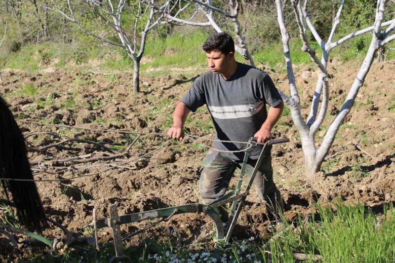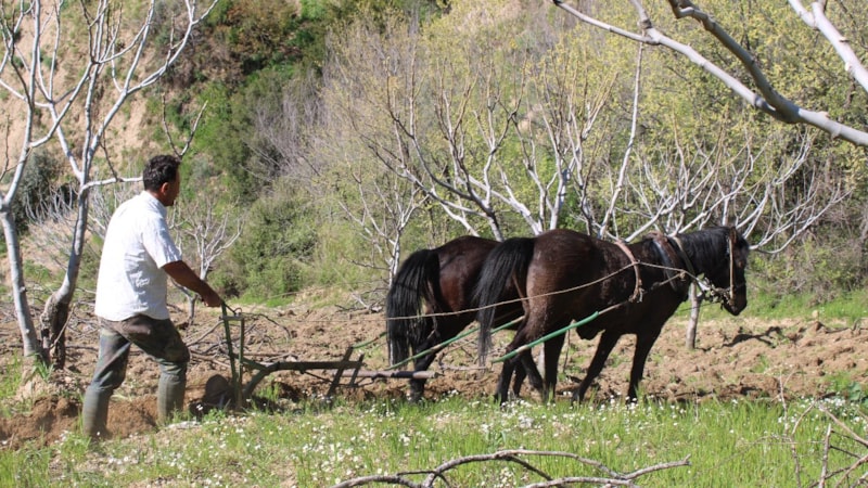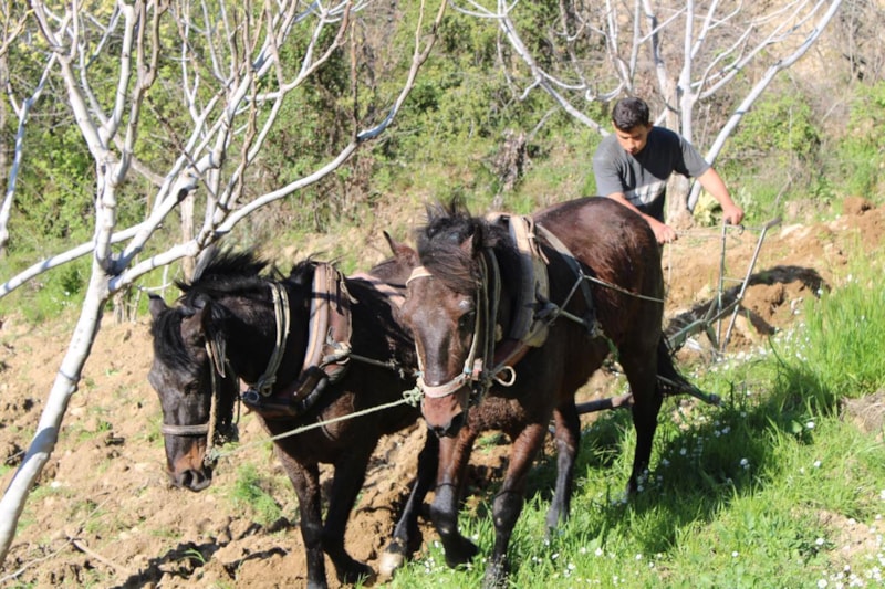 Traktörün giremediği dağlık arazilerde atlara koştuğu karasaban ile çift sürerek üretim yapan İsmail Açıkgöz, ekonomik imkansızlıklardan değil arazinin engebeli yapısından dolayı bahçelerini atlarla sürerek işlediklerini belirtti.