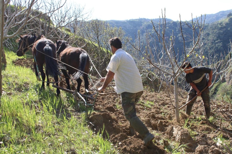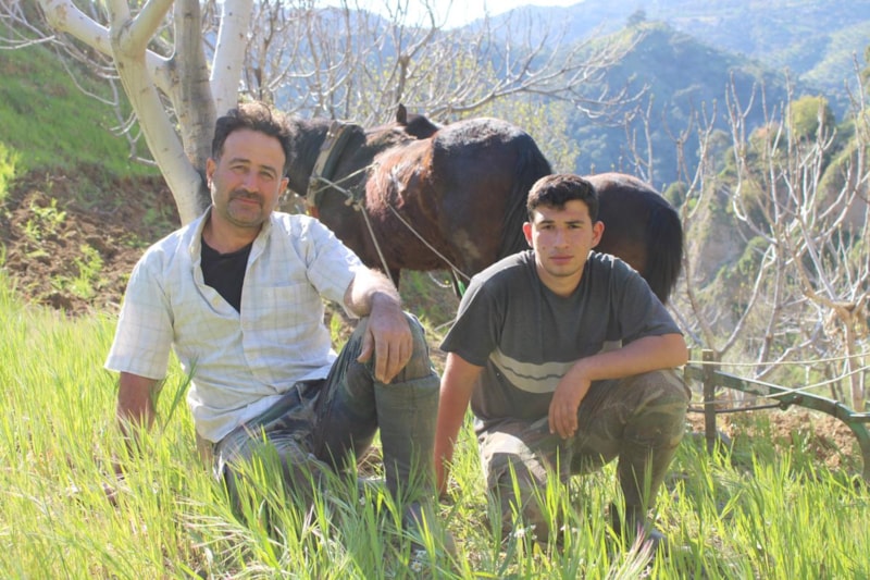 Çocukluğumdan beri çiftçilikle uğraşıyorum. Şartlar zor, arazi engebeli traktör giremediği için hayvanlarla işimizi görüyoruz. Bu sene hava kurak geçti. Normalde oruçluyken zor oluyor ama yağmur olmadığı için ve hava kurak geçtiğinden dolayı zamanla yarışıyoruz. Bugünlerde bu işin bitmesi lazım. Bitmezse kalır ve sonra imar olmaz, inciri kaliteli alamayız. İşimizi atlarla görüyoruz. Çifte başladık. Nasip olursa bir aya kadar bitireceğiz. Keşke şartlar müsait olsa da traktörle, teknoloji ile bu işi halletsek ama olmadığı için beygirler ile eski düzen devam ediyoruz. İmkanlar dahilinde düz yerleri traktörle hallediyoruz ama yamaçlarda traktör ile bu işi beygirlerle hallediyoruz.