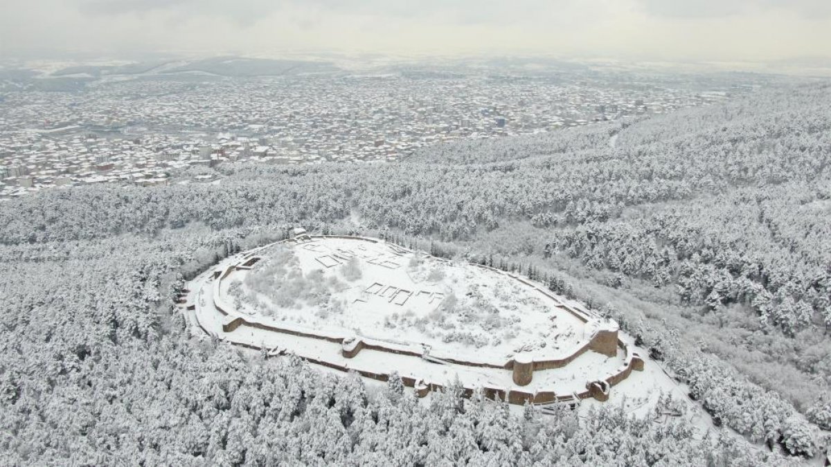 Özellikle kentin yüksek kesimleri karla kaplanırken, Sultanbeyli'de bulunan Tarihi Aydos Kalesi’nde kartpostallık görüntüler oluştu.