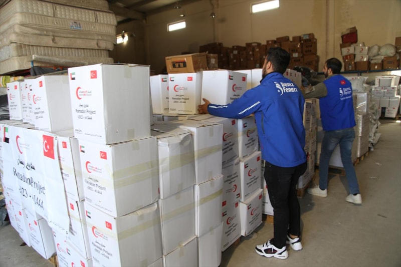 Bu kapsamda BAE Ankara Büyükelçiliği tarafından temin edilen yardım kolileri, Deniz Feneri Derneğinin Yenice Mahallesi'ndeki deposuna getirildi.